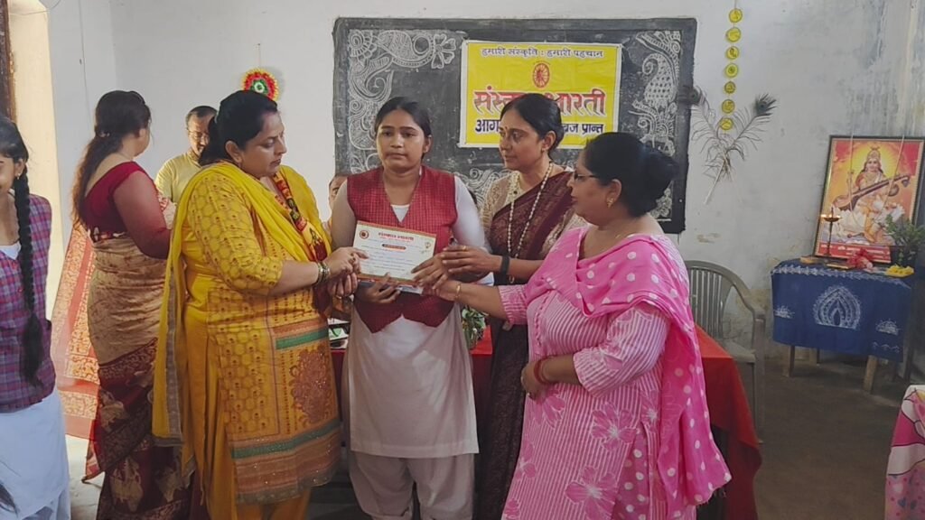 कार्यक्रम की संयोजिका और सम्मानित चित्रकार मीतू सिंह ने बच्चों की सृजनात्मकता को प्रोत्साहित करने के लिए संस्कार भारती की प्रशंसा करते हुए कहा कि आगरा के विभिन्न क्षेत्रों में जाकर हाशिए पर पड़ी प्रतिभाओं को सामने लाना कठिन कार्य है, लेकिन इससे कलाओं और संस्कारों का अगली पीढ़ी में सृजन हो रहा है।