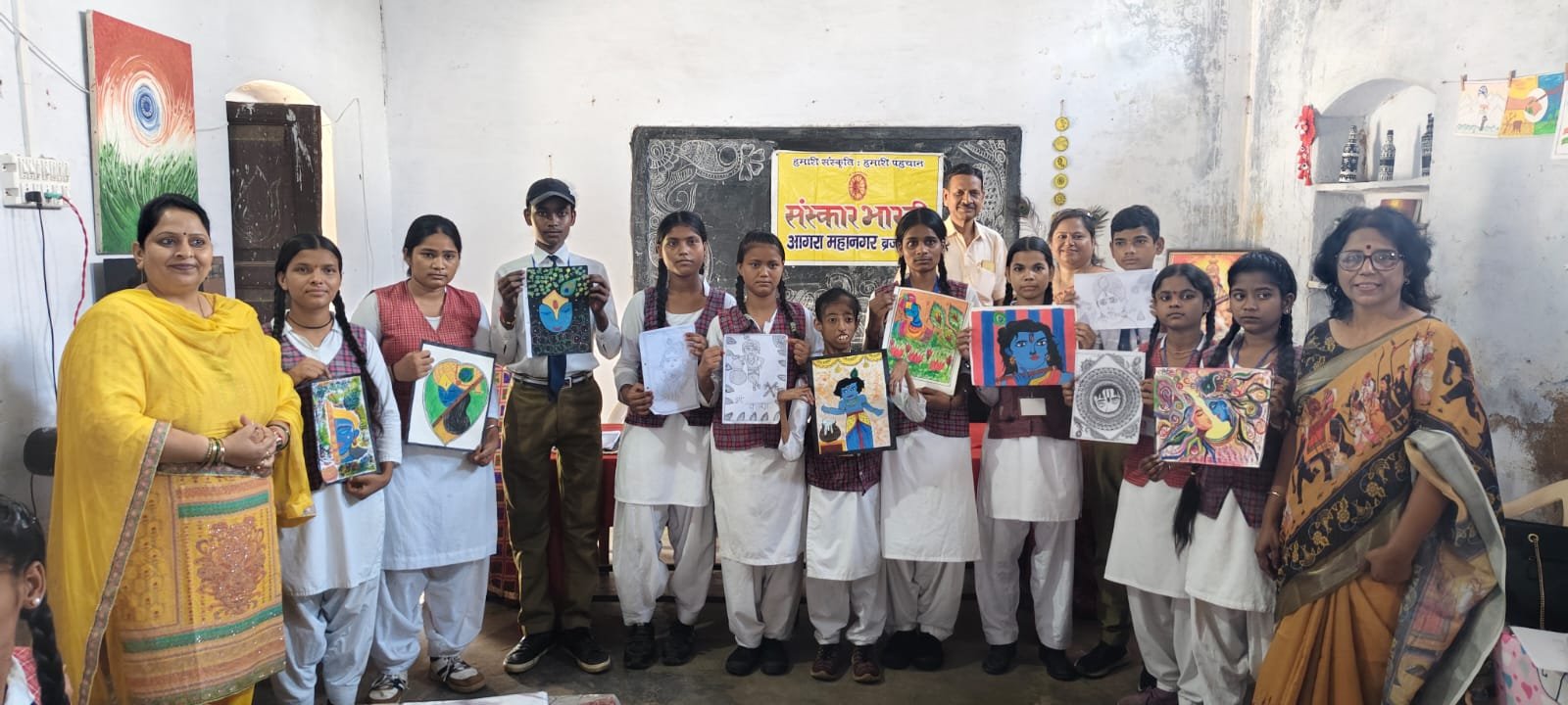 संस्कार भारती, आगरा महानगर,चित्रकला टोली, ब्रज प्रांत द्वारा “चित्रकला के रंग: कान्हा जी के संग” श्रंखला के अन्तर्गत चित्रों का सृजन और प्रदर्शन फतेह चंद इण्टर कालेज, लोहामंडी, आगरा पर आयोजित किया गया।