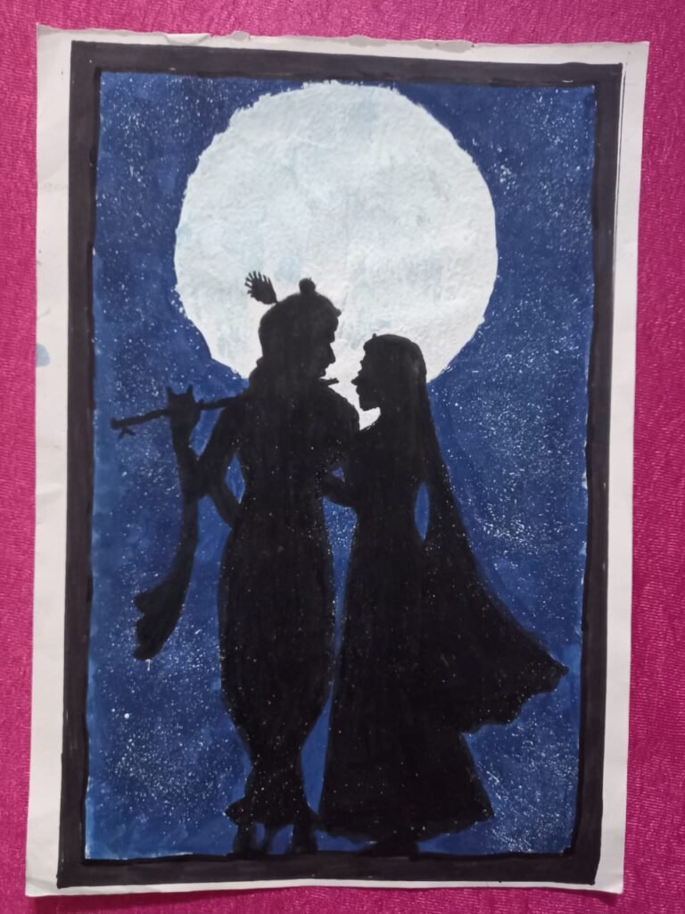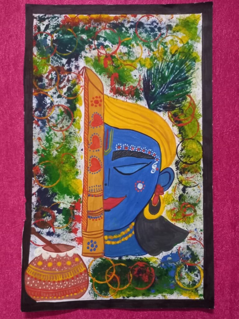 42 छात्र छात्राओं द्वारा चित्र बनाये गए, श्री कृष्ण की विविध लीलाओं का अंकन किया गया। चित्रों में कहीं कन्हैया अपने आंखे बंद कर बांसुरी बजा रहे हैं तो कहीं राधा संग लीला कर रहे हैं। चित्र में कहीं कान्हा माखन चुरा रहे हैं तो कहीं रूठ कर बैठे हुए हैं. कहीं किसी वृक्ष के पीछे से झांकते हुए तो कहीं गायों को दुलारते हुए चित्रित है। ऐसे कृष्ण के अनेक अनेक रूप प्रदर्शित हो रहे हैं।