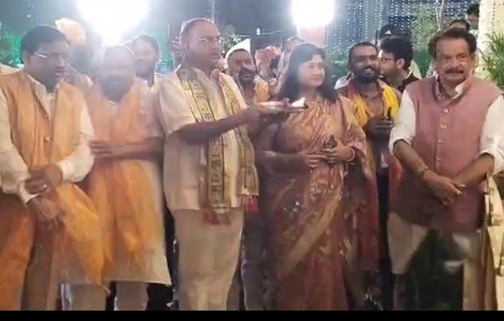 जनक मंच पहुंचने पर ड्रोन द्वारा प्रभु के स्वरूपों पर पुष्प वर्षा और आतिशबाजी की गई। श्री जनकपुरी महोत्सव आयोजन समिति के अध्यक्ष मुरारी प्रसाद अग्रवाल ने शंखनाद किया।