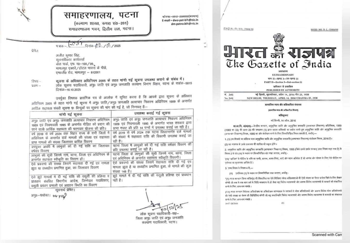 RTI से हुआ वह ‘440 वोल्ट’ का खुलासा, भारत के राजपत्र (14 अप्रैल, 2016) ने SC/ST (अत्याचार निवारण) संशोधन नियम के तहत पीड़ितों के लिए ₹1 लाख से लेकर ₹8.25 लाख तक का जो ‘सुरक्षा कवच’ तैयार किया था, कुछ शातिर लोगों ने उसे ‘उगाही का हथियार’ बना लिया है।