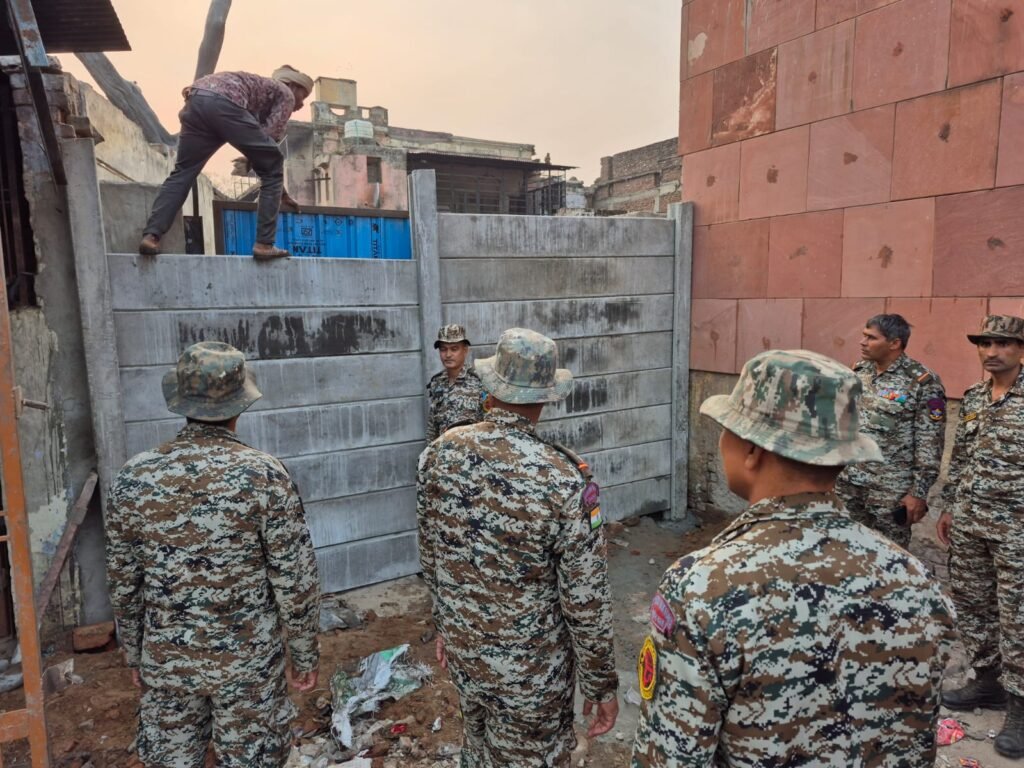 नगर आयुक्त के निर्देश पर नगर निगम की रेवेन्यू इंस्पेक्टर शिप्रा गुप्ता ने इस स्थल का निरीक्षण किया और पेमाइश कराई। जिसके बाद तत्काल लेबर को बुलाया गया, और दीवार का निर्माण कार्य शुरू किया गया। मजदूरों की सुरक्षा के लिए उन्होंने स्पेशल टास्क फोर्स के जवानों को भी तैनात कर दिया।