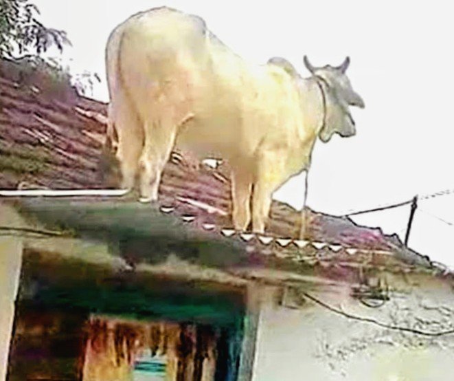 तेलंगाना के आदिलाबाद में एक बैल आवारा कुत्तों के हमले से बचने के लिए घर की छत पर चढ़ गया, प्रत्यक्षदर्शी इस घटना को देख कर आश्चर्य में पड़ गए। इस अजीब घटना को देख हर कोई हैरान और परेशान दिखाई दिया।