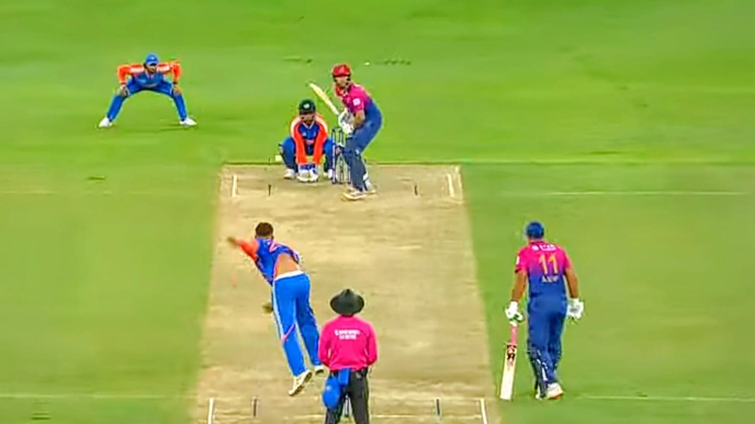 भारत के फिरकी गेंदबाज कुलदीप यादव ने अपने तीसरे ओवर की पहली गेंद पर चौथा विकेट लेकर संयुक्त अरब अमीरात की टीम को घुटनों पर ला दिया। वहीं शिवम दुबे ने 3, वरुण और अक्षर ने 1-1 विकेट झटका।