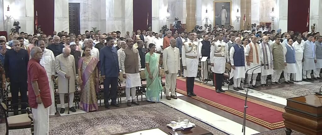 शपथ ग्रहण के बाद प्रधानमंत्री श्री नरेंद्र मोदी तथा सभी केबिनेट मंत्रियों ने उन्हें बधाई दी।