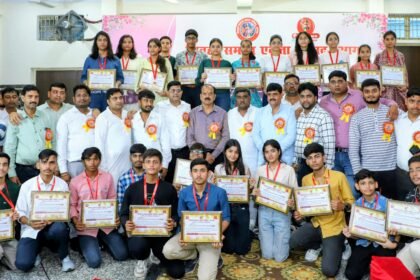 आगरा: रविवार 05 अक्टूबर 2025 आगरा में रविवार को शिवहरे समाज के मेधावी छात्र-छात्रा सम्मान समारोह में 40 बच्चों को सम्मानित किया गया। इस दौरान एमपीपीएससी टॉपर डिप्टी कलक्टर देवांशु शिवहरे को शिवहरे गौर...