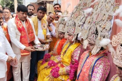 *प्रभु राम की बारात पहुँची जनकपुरी, नगर भ्रमण के दौरान उमड़ा श्रद्धा का सैलाब, प्रभु की एक झलक पाने और आरती उतारने को लगीं पग पग पर कतारें* आगरा: गुरुवार 18 सितंबर 2025 बजाओ ढोल स्वागत में मेरे घर राम ...